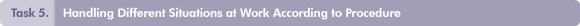 This task presents the examinee with three (3) situations which occur during the performance of his duties. Each situation occurs during one of the different phases of a cabin crew member's work, namely: Pre-flight, Pre-passengers boarding, Passengers boarding, Pre-departure, In-flight, Before landing, Deplaning/Disembarking, Hand-over of responsibility to another crew and Post-flight briefing. The examinee is required to resolve the situation according to the procedures being outlined for each situation. |